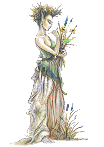 Dryads are beautiful, intelligent tree sprites. They are as elusive as they are alluring, however, and dryads are rarely seen unless taken by surprise -- or they wish to be spotted. The dryad's exquisite features, delicate and finely chiseled, are much like an elf maiden's. Dryads have high cheek bones and amber, violet, or dark green eyes. A dryad's complexion and hair color changes with the seasons, presenting the sprite with natural camouflage. During the fall, a dryad's hair turns golden or red, and her skin subtly darkens from its usual light tan to more closely match her hair color. This enables her to blend with the falling leaves of autumn. In winter, both the dryad's hair and skin are white, like the snows that cover the oak groves. When encountered in a forest during fall or winter, a dryad is often mistaken for an attractive maid, probably of elvish descent. No one would mistake a dryad for an elf maid during the spring and summer, however. At these times of year, a dryad's skin is lightly tanned and her hair is green like the oak leaves around her. Dryads often appear clothed in a loose, simple garment. The clothing they wear is the color of the oak grove in the season they appear. They speak their own tongue, as well as the languages of elves, pixies, and sprites. Dryads can also speak with plants. Dryads are shy, nonviolent creatures. They rarely carry weapons, but they sometimes carry knives as tools. Though a dryad can use this as a weapon in a fight, she will not resort to using a knife unless seriously threatened. Dryads have the ability to throw a powerful charm person spell three times a day. A Dryad always uses this spell if seriously threatened, attempting to gain control of the attacker who could help her most against his comrades. Dryads will only attempt to charm elves as a last resort because of their natural resistance to this type of spell. The dryad's use of her ability to charm is not limited to combat situations, however. Whenever a dryad encounters a handsome male, she usually tries to charm him. Charismatic victims of a dryad's attentions are taken to the tree sprite's home, where the men serve as amorous slaves to their beautiful captors. There is a fifty percent chance that a person charmed and taken away by a dryad will never return. If he does escape from the dryad's charms, it will be after one to four years of captivity. This tree sprite also has two other powers that are very useful in defense. Unless surprised, a dryad has the ability to literally step through a tree and then dimension door to the oak tree she is part of. She can also speak with plants. This enables the dryad to gather information about parties traveling near her tree, and even to use vegetation to hinder potential attackers.Some legends claim that dryads are the animated souls of very old oak trees. Whether this is really the case, it is true that dryads are attached to a single, very large oak tree in their lifetimes and cannot, for any reason, go more than 360 yards from that tree. If a dryad does wander farther away, she becomes weak and dies within 6d6 hours unless returned to her home. The oak trees of dryads do not radiate magic, but someone finding a dryad's home has great power over her. A dryad suffers damage for any damage inflicted upon her home tree. Any attack on a dryad's tree will, of course, bring on a frenzied defense by the dryad. Although dryads are generally very solitary, up to six have been encountered in one place. This is rare, however. All this really means is that a number of dryad oaks are within one hundred yards of one another and the dryads' paths cross. These dryads may come to each other's aid, but never really gather socially. Any treasure owned by a tree sprite is hidden close to her home tree. The gold and gems that make up a dryad's treasure are almost always the gifts of charmed adventurers. These tree sprites realize that most humans and demihumans fear them for their ability to charm, so dryads only deal with strangers on rare occasions. When approached carefully, however, dryads have been known to aid adventurers. They are a useful source of information, too, as they know a great deal about the area in which they live. Dryads are staunch protectors of the forest and groves in which they reside. Any actions that harm the area, and especially its plant life, are met with little tolerance.