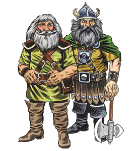 Dwarves are a noble race of demihumans who dwell under the earth, forging great cities and waging massive wars against the forces of chaos and evil. Dwarves also have much in common with the rocks and gems they love to work, for they are both hard and unyielding. It's often been said that it's easier to make a stone weep than it is to change a dwarf's mind. Standing from four to four and a half feet in height, and weighing one hundred and thrity to one hundred and seventy pounds, dwarves tend to be stocky and muscular. They have ruddy cheeks and bright eyes. Their skin is typically deep tan or light brown. Their hair is usually black, gray, or brown, and worn long, though not long enough to impair vision in any way. They favor long beards and mustaches, too. Dwarves value their beards highly and tend to groom them very carefully. Dwarves do not favor ornate stylings or wrappings for their hair or their beards. Dwarven clothing tends to be simple and functional. They often wear earth tones, and their cloth is considered rough by many other races, especially men and elves. Dwarves usually wear one or more pieces of jewelry, though these items are usually not of any great value or very ostentatious. Though dwarves value gems and precious metals, they consider it in bad taste to flaunt wealth. Dwarves usually live from 350 to 450 years. Dwarves have found it useful to learn the languages of many of their allies and enemies. In addition to their own languages, dwarves often speak the languages of gnomes, goblins, kobolds, orcs, and the common tongue, which is frequently used in trade negotiations with other races. Dwarves are courageous, tenacious fighters who are ill-disposed toward magic. They never use magical spells or train as wizards, though they can become priests and use the spells of this group. Because of their nonmagical nature, in fact, they are rather resistant to some types of sorcery. A dwarf's nonmagical nature can also cause problems when he tries to use a magical item. In fact, if a dwarf uses a magical item that is not specifically created for his class, there is a twenty percent chance the item malfunctions. As with magical attacks, dwarves are unusually resistant to toxic substances. In the thousands of years that dwarves have lived in the earth, they have developed a number of skills and special abilities that help them to survive. All dwarves have infravision that enables them to see up to sixty feet in the dark. When underground, dwarves can tell quite a bit about their location by looking carefully at their surroundings. When within ten feet of what they are looking for, dwarves can detect the grade and slope of a passage, new tunnel construction, sliding/shifting walls or rooms, and stonework traps, pits, and deadfalls. Dwarves can also determine their approximate depth underground at any time. During their time under the earth, dwarves have also developed an intense hatred of many of the evil creatures they commonly encounter. The small size of dwarves is an advantage against ogres, trolls, ogre magi, giants, and titans; because of that size difference and the dwarves' training in fighting such large foes. Dwarven armies are well-organized and extremely well-disciplined. Dwarven troops usually wear chain mail and carry shields in battle. They wield a variety of weapons. The composition of a typical dwarven army by weaponry is axe and hammer, sword and spear, sword and light crossbow, word and pole arm, axe and heavy crossbow, axe and mace, or hammer and pick. The commanders of the dwarven troops wear plate armor and carry shields. Usually constructed around profitable mines, dwarven cities are vast, beautiful complexes carved into solid stone. Dwarven cities take hundreds of years to complete, but once finished they stand for millennia without needing any type of repair. Since dwarves do not leave their homes often and always return to them, they create their cities with permanence in mind. Troops guard dwarven cities at all times, and sometimes dwarves also use animals as guards -- either several brown bears or a few dozen wolves. Dwarven society is organized into clans. A dwarven clan not already attached to a city or mine travels until it finds an outpost where it can begin to ply a trade. Clans often settle close together since they usually need the same raw materials for their crafts. Clans are competitive, but usually do not war against one another. Dwarven cities are founded when enough clans move to a particular location. Each dwarven clan usually specializes in a particular craft or skill; young dwarves are apprenticed at an early age to a master in their clan (or, occasionally, in another clan) to learn a trade. Since dwarves live so long, apprenticeships last for many years. Dwarves also consider political and military service a skilled trade, so soldiers and politicians are usually subjected to a long period of apprenticeship before they are considered professionals. To folk from other races, life within these cities might seem as rigid and unchanging as the stone that the dwarven houses are wrought from. In fact, it is. Above all, dwarves value law and order. This love of stability probably comes from the dwarves' long life spans, for dwarves can watch things made of wood and other mutable materials decay within a single lifetime. It shouldn't be surprising, then, that they value things that are unchanging and toil ceaselessly to make their crafts beautiful and long-lived. For a dwarf, the earth is something to be loved because of its stability and the sea a thing to be despised -- and feared -- because it is a symbol of change. Dwarves also prize wealth, as it is something that can be developed over a long period of time. All types of precious metal, but particularly gold, are highly prized by dwarves, as are diamonds and other gems. They do not value pearls, however, as they are reminders of the sea and all it stands for. Dwarves believe, however, tha
