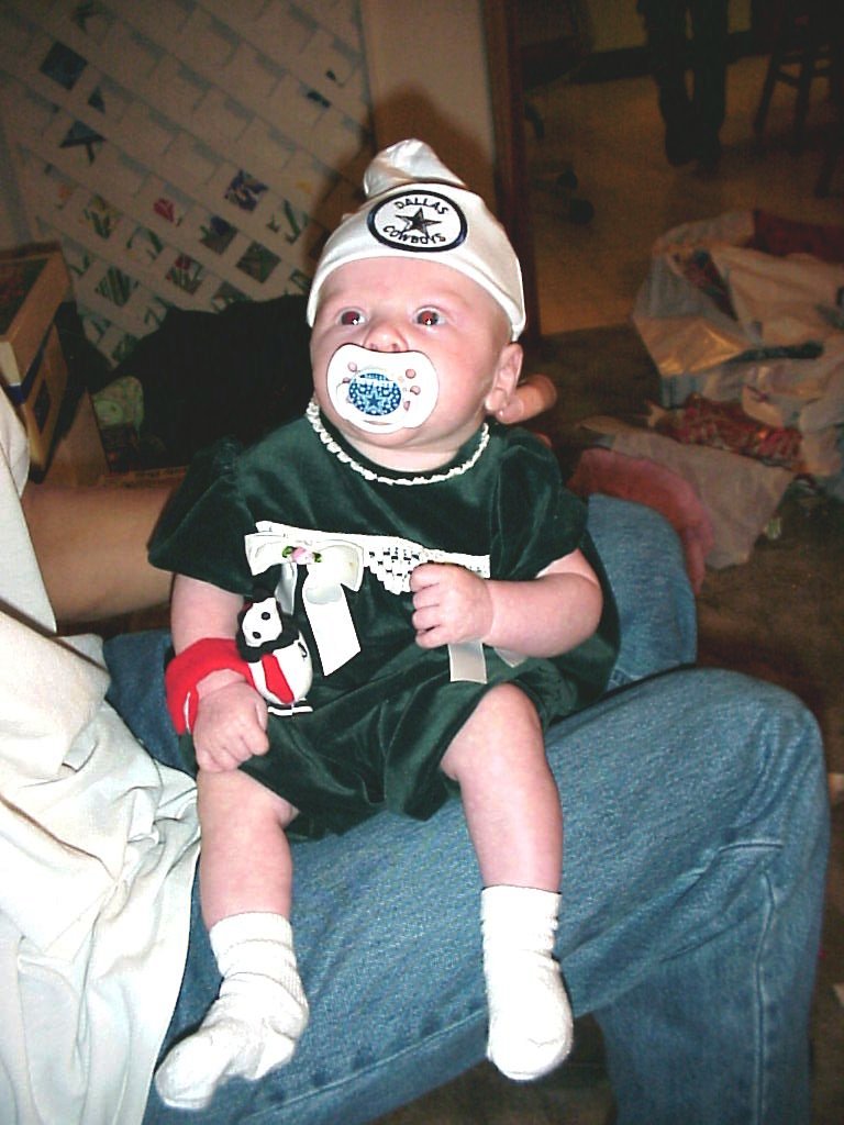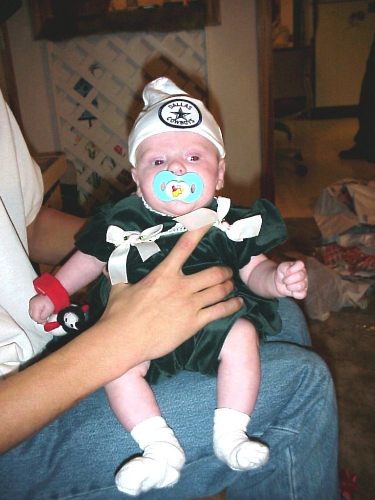 Katelyn is only 3 months old in this picture and already her Uncle JohnMark is trying to turn her into a Dallas Cowboy fan.