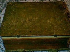 Leather Cover, latches bound to book by small metal nails and metal stems to hook the latches.