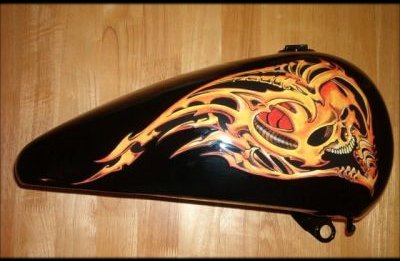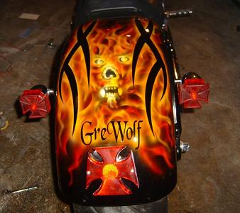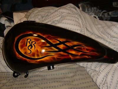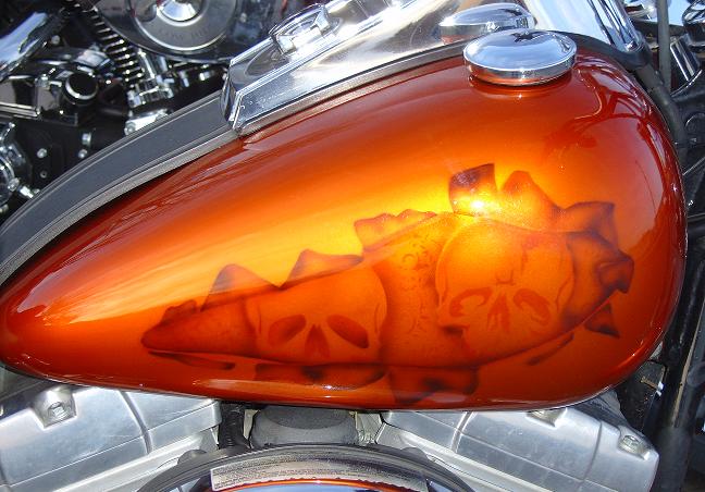 Here is a custom paint job on a customer's 2002 Harley FXST.