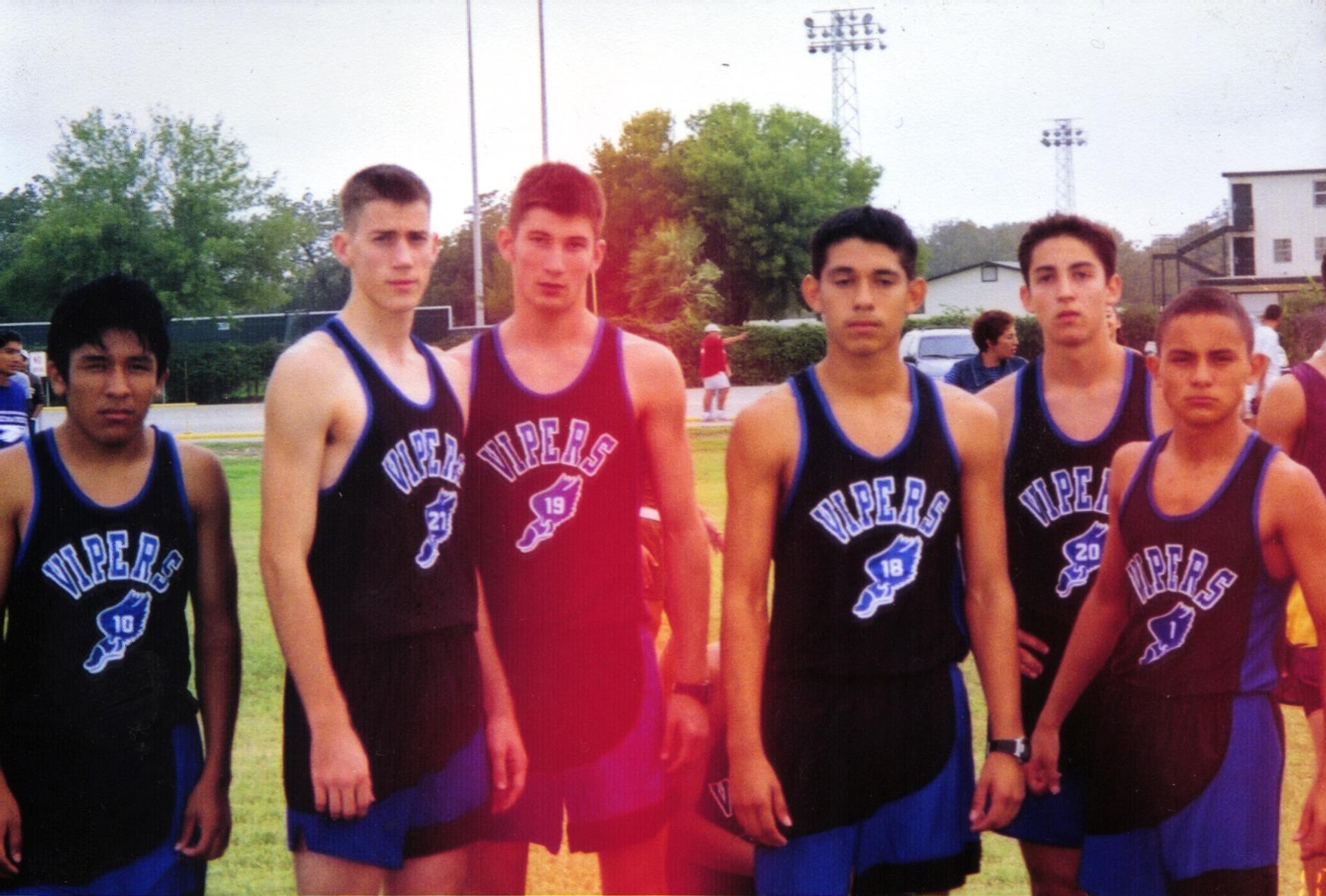 This picture is of the Memorial high school Varsity Cross Country team. Excluding a few people. The picture was taken at our district meet in San Antonio. We won first place with finishes of 1st, 2nd, 3rd, 4th, 5th, and 6th. IN the picture the people are as follows: Arturo, me, Jake, Jesse, Ryan, and Eric. Eric finished 1st, Jesse was 2nd, Jake was 3rd, i was 4th, Arturo was 5th, and Ryan was 6th.