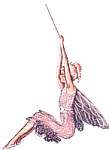 Fairies (Fae) are immortal magic Little People with wings, who live in woody dells. Fairies can only be seen clearly by animals and seldom by humans, although if one is fortunate enough, one might catch a fleeting glimpse. There are a few exceptions however. The first is when fairies use their power (known as 'glamour') to enable a human to see them. During a full moon on Midsummer Eve a mortal may witness fairy dances or celebrations. And by looking through a self-bored stone (a stone in which a hole has been made by tumbling in the waters of a brook; not found on a beach) one can see fairies distinctly. They are also called Sidhe (pronounced 'shee') literally means "people of the (fairy) hills" it is the Gaelic name for the fairies in both Ireland and the Highlands of Scotland. Sometimes they will take human lovers and can have offspring with humans also. Knowing a fairy's true name gives you power over it, so fairies are said to guard their real names very closely. Bells are used as protection against faeries and evil spirits. But faeries also use bells. They are commonly used in faerie rades on the harnesses of their horses. Metal/ iron also repels fairies. Four-leaf clovers can help dispel fairy spells and aid one in seeing invisible fairies. Blackthorn bushes are held sacred by fairies, and fields of bluebells are thought to be heavily enchanted by them. They have numerous wars with insects and reptiles. On September 29 it is said the doors open between our world and the fairy realm for a time. | |