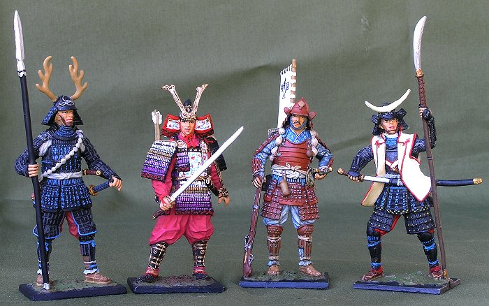 Samurai with Yari spear, XVI c. Samurai Minamoto no Kuro Yoshitsune, XII c. Samurai on march, XII c. Samurai with Naginata, XVI c. |