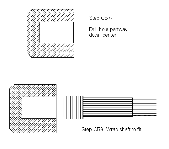 IMPORTANT: THIS HOLE DOES NOT GO ALL THE WAY THROUGH. There must be at least 1/4" left between the outer face of the cylinder and the very bottom of the hole. This serves as the 'stop ' that is required at the end of combat arrow shafts, in place of the combined plywood/leather arrangement of earlier modified Markland heads. I would recommend leaving a little more than 1/4", just for luck.