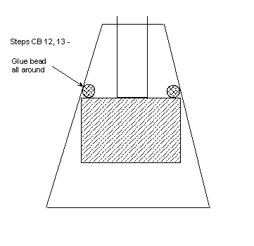 - Slide the funnel down till it contacts the top edge of the cylinder. Work the funnel into shape, if needed, to make sure you have good contact between the funnel and the glue bead all around. As closely as possible, make sure the small opening of the funnel is centered around the shaft. Figure