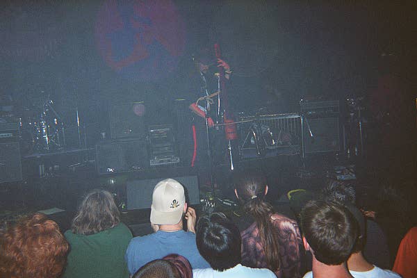 Les Claypool jammed with MIRV. He is wearing an alien mask. He is playing the Whamola Stick. It is a one string electric upright bass with a whammy bar attached to the top. This instrument was made by a fan and given to Mr. Claypool. Les plays it with a drumstick. It sounds whamolicious.