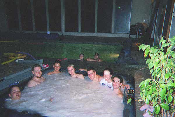 We left Houston in the morning in our big white rental van, which pulled the trailer that had all our stuff in it. Lori's dad, Jim Richey drove. It was a pretty long drive to Booker, TX (where we played our show). Booker is located at the top of the Texas Pan Handle on the border of Oaklahoma. It was a boring trip up and Robbie farted alot. We arrived in Booker in the evening. Everyone stayed at different houses in town. Russell and B.J. had the best house, (the Skipper's) because it had an indoor pool. C.J. Skipper showed B.J. and Russell the dog food plant (where they made dog food out of cows that had died in the fields) that he managed.
