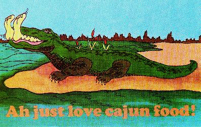 Authentic Cajun RecipesA mother crawfish took her children out for a walk to teach them something of life. When they approached a horse, she told them not to worry because a horse only eats hay or grass. A bit further, they came to a chicken , and she said "Don't be afraid because chickens only eat corn and feed." Further up the road mother began to scream in panic. "Run for your life! That's a CAJUN he eats ANYTHING!!"