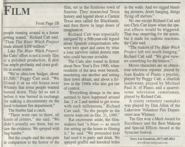 Scanned from the Fort Worth Star Telegram on Oct. 13, 2000