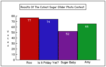 Below is a graph of the contest results. It was real close, but the winner is Roo by 3 votes. Thanks to everyone who entered and voted.