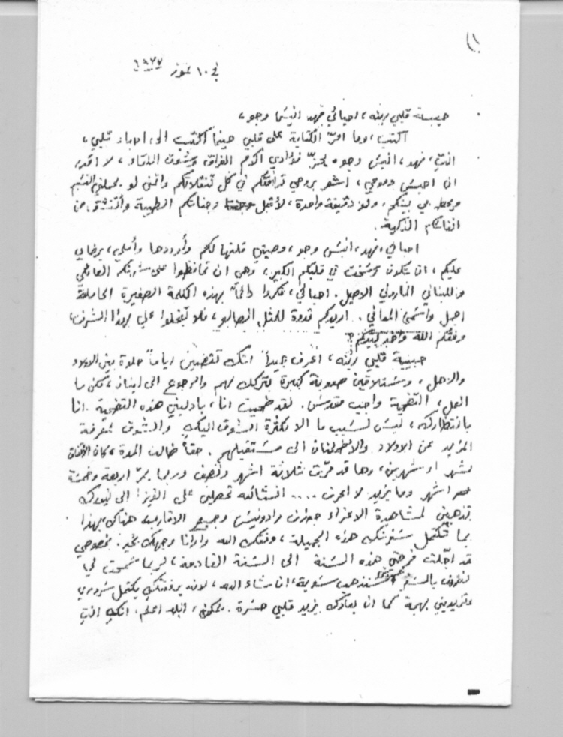 Letter sent by my father Antoine Anis Feghali in the time that my mother Renee came to to visit their childrens Fahd, Anis and Joe two years after leaving Lebanon. At this time Fahd, Rafic, Anis and Joe are in Venezuela Randa and Roy live near my mother Renee in Lebanon, My father died in 1999 and this letter was read in the Church in its 40 Days.