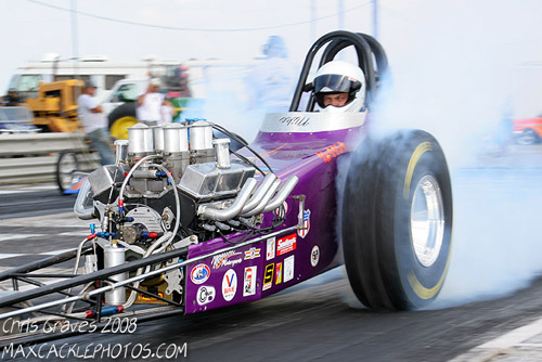 Qualifying concluded with Mike Millsap claiming his fifth straight number one qualifying effort with a nice 4.95 at 134 mph. Don Holley claimed the second qualifying position with a 5.15 at 134 mph, Thomas Porter’s “Bone Pedaler” nabbed the third spot at 5.23 and Steve Dunkin’s “Foolish Pleasure” finished out the top half in fourth with a 5.25 at 131 mph.