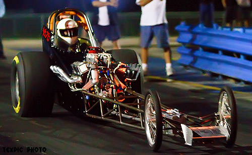 The Southwest Junior Fuelers battled a wet forecast on Independence Day Weekend at North Star Dragway in Denton, Texas and pulled off a successful event, the third of the season. The SWJFA series shared the spotlight with a pair of jet dragsters and an exhibition from the Texas Blown Fuel series as North Star Dragway hosted one of their biggest events of the season. The forecast was less than promising but that didn’t keep the fans away as cars were lined up past the finish line to see some holiday drag racing action under the lights. A brief shower delayed the first qualifying session until close to 10 p.m. and Holley Hot Rod Reunion winner Ricky Marshall led the field with a 4.77 at 145 mph.