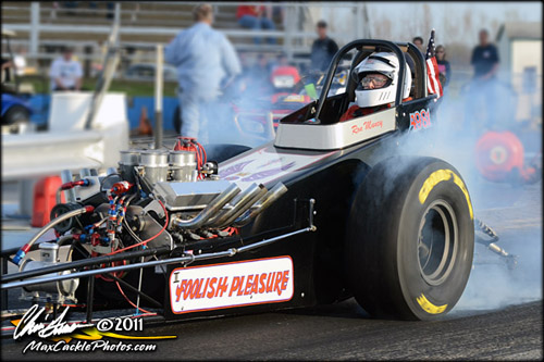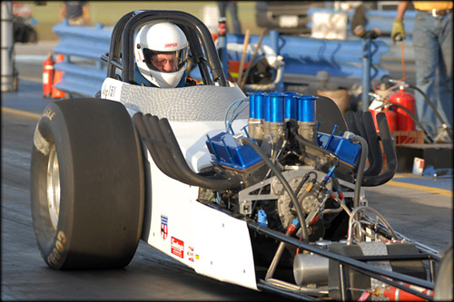 The Southwest Junior Fuel Association held their second event of the 2011 racing season on Saturday, May 14th at Navasota Raceway in Navasota, Texas. This was the series’ first visit to the facility and a strong turnout of fans came out to enjoy the perfect weather and heads up old school drag racing action. Twelve cars were on hand to battle for the event crown including the newest SWJFA member, Mike Buchanan, of Wichita, Kansas fielding a 1960’s Jim Davis car with an injected small block powerplant.