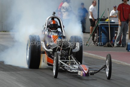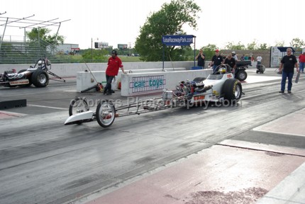 Defending series Champion, Richard Brady, clicked off a 7.78 at 167 mph to qualify eighth behind Steve Dunkin’s 7.76. Ron Muncy, Mike Buchanan, Kenny Stroud, making his driving debut, and Mark Hollander rounded out the twelve car field. The teams returned to the pits for some first round adjustments and drivers drew their pairings in preparation for the first round of eliminations.