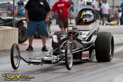 In the second qualifying session, Mike Buchanan stepped up to an 8.25 in “Lou Anne” to qualify number ten. Ron Muncy clicked off a best of an 8.11 in the “Foolish Pleasure III” to nab the number nine spot. Jeff Jones posted a 7.87 in the “Off-Shore Flash” to secure the number seven spot and Mike Millsap wheeled the “Sachse Rod Shop” dragster to a 7.86, good for number six. Brandon Lewis stepped up to a 7.67 to qualify fourth and Brian Briggs stepped up to a 7.77 also claim a spot in the top half of the field.