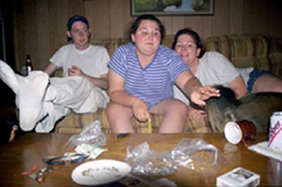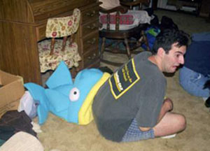 Left: Allison looks so eager to get to Schlitterbaun. Right: John's being attacked by his dog's killer fish bed.
