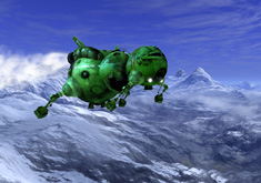 STARBUG - A class two ship to surface vessel, withdrawn from sevice due to design faults however the crew of Red Dwarf prefur to use it in preference to the smaller Blue Midget and White Midget. Originally there were at least two Starbugs but the effort to maintain them is enourmous. (After all the crew manage to crash them more times than a ZX81.) For at least the last 200 years the crew have lived aboard Starbug One while searching for their mothership. Recently due to the future crew killing the present crew two universes have merged creating an altogether better Starbug 1A. Starbug is capable of Cloaking, travelling underwater and on land. (Not forgetting through space of course!) It also has laser cannons (thanks to an encounter with rogue simulants) and is fitted with a decoy device. It also has 2 statis boothes, a galley and a docking bay. Sadly however she's still quite a slow ship capable of being out runned by the Eastbourne Zimmerframe Relay Team. Although it's never been used Starbug is also capable of splitting into three seperate parts.