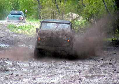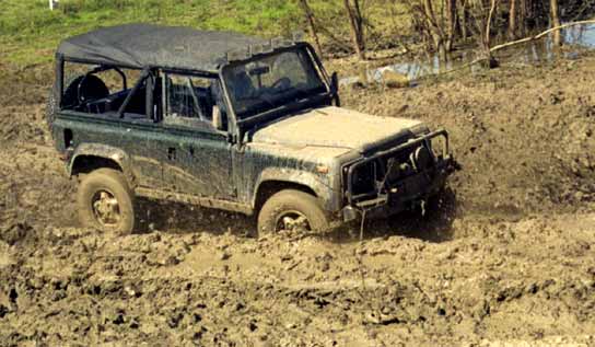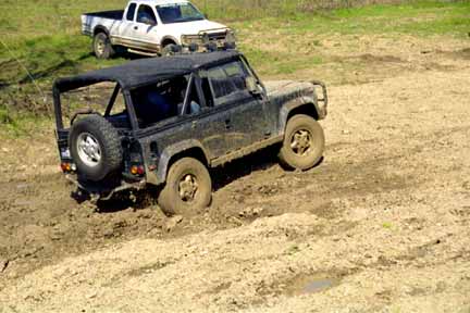 Feb. 4 - The Defender fighting its way through a mud pit that only two other vehicles cleared.