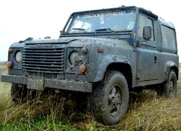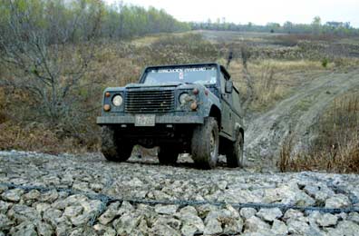 The Defender climbing a manmade hill