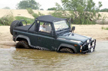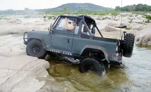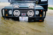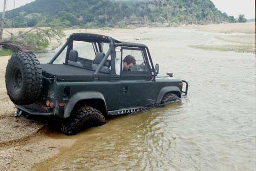 Apr. 22 - I fell into Eric's ruts coming back through a water crossing. The Defender sank pask the winch into this quicksand.