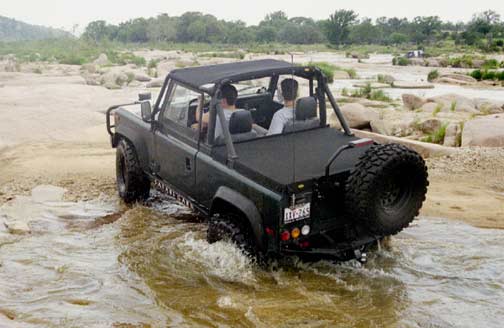 I came across a picture of a Defender 90 (looks like a '94) that I grabbed off Safari Gard's website back in November. I remember that it had everything I wanted to do to the Defender look-wise, right down to the black wheels. Its interesting, now, to compare the two: