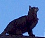 After getting out, he leaps to the top of a six foot fence. From there, he leaps to the low part of the roof. From there, he climbs to the absolute top of the roof. He then talks to the birds. In the center picture, he is telling the birds that they are on the menu for lunch.