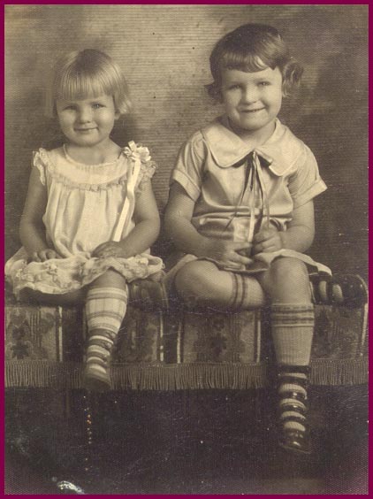 LOIS, on the right, and HELEN McCoy are the daughters of Roy and Lollie White McCoy. Lois was born in 1922. Helen was born in 1924. Roy and Lollie's youngest daughter, MARY, wasn't born at the time of this picture.