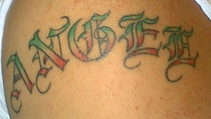 THIS IS MY NEWEST TATTOO IT IS OF MY NAME.. I CHOSE THIS BECAUSE I GOT IT WITH MY NEPHEW DANNY, HE IS THE OLDEST SON OF MY BROTHER WHO WAS KILLED..THE REASON I CHOSE THIS DESIGN WAS BECAUSE MY NAME WAS THE FIRST TATTOO I GOT WITH HIS FATHER AND I THOUGHT IT WOULD BE COOL TO CARRY ON A TRADITIONS WITH HIM..THIS TATTOO WAS ALSO GIVEN TO ME BY GERALD AT THE DRAGON LADY IN HARKER HEIGHTS.. IT IS BESIDE THE THE JESUS TATTOO ON MY LEFT SHOULDER..