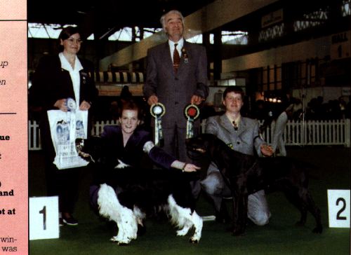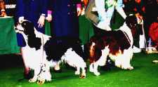 The pictures are as in order below: Jo-Jo' Daddy "Plaiglen Border Star" (Soames) and this is a picture where he has his head stuck between Fran's legs looking out the back. Second picture of Soames is a full bodied view. Third picture is Jo-Jo's Mum. Fourth picture is Jo-Jo's Great Great Grandma "Wardhill Whistling Magic". Fifth picture is Jo-Jo's Great Great Granddaddy "Sh Ch Cleavehill Yorkshire Spirit". Sixth picture is Jo-Jo's Great Granddaddy "Sh Ch Eastriding Forever True" with Kelly, together they won Best Junior Handler at Crufts this year. Picture number seven is Jo-Jo's Great Granddaddy "Sh Ch Wardhill Whistling Miller". The eighth picture is of two of JoJo's kin we have been told for sure and our source is trying to get their names for us. The last picture is of Great Great Granddaddy "Nice'N'Easy" whom is the one sitting and laying down is JoJo's Granddaddy "Sh Ch Lochar Border Union". Kathy and I do hope that you have enjoyed these pictures and seeing some of Jo-Jo's heritage. And we want to thank you for visiting our page. "WE PUT THE ENGLISH IN THE SPRINGER".