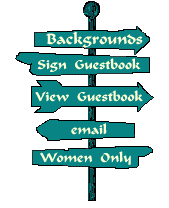 name is Terry. I live in El Paso, Texas, with my wonderful husband, Mark.... and no I'm not a cowgirl! At the moment I'm trying to learn how to work this computer, in the hopes of opening my own business in the near future. When I'm not doing that, I'm taking care of our three fish tanks, our rabbit, bird, cat and Keote our wolf dog....they can be quite a handfull. For fun and relaxation I enjoy reading (horror books), working in the garden, fishing, or just going out to see a good movie. When I started this site a few years ago, I wasn't sure what to do with it. Since then I've discovered a passion for creating animations, and I hope while you are here you'll take a look. Please feel free to use what you like. On a personal note for all the people who have written me in the last month...I have had to change my internet provider and in the process lost all my email addresses, so unless you send me your email address again I won't be able to contact you. I also have a new email account which I have already updated on my page. I hope you enjoyed your visit to my site. Drop by often, as I'm always adding new things. ![]() Please use the sign post at the left to leave a message in my guestbook or check out the rest of my pages.