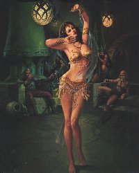 The kajira called "reivia" has done a superb job of making short plot outlines available for each of the Gor novels. She states on her page that the text files were written and offered with permission from Marcus_of_Ar. Information is available on this site for ordering copies of the books (as well as credits for the cover art) from a current Publisher. The above picture is from Dancer of Gor.