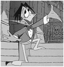 The city of Transelvania has been subject to a long lineage of vampire ducks. The villiagers have learned to stay away from Castle Duckula. Due to a mix up in the spell used to bring the latest Count Duckula back to life, the grousome creature is a vegitarian. A cross between Count Dracula and Donald Duck, he is hunted for his ancestors evil doings by Dr. von Gooswing. Along with his servants, Nanny and Igor, he escapes the Doctor by using his magical coffin to teleport himself, his house, and everything in it to different parts of the world.