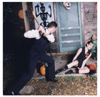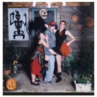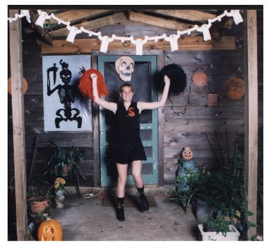 Halloween 98!WELLLLLLLLLLLLL, I know I'm kinda 2 years behind, but OH WELL.. he he.. last year for Halloween i was a slut, and we cant very well show that online.. well i could.. buttttt... dont got any pictures.. =( anyways, I have a cute little story for those of you who wanna know... on the day before Halloween, i went to a little dance thing, and like i was dressed as a cheerleader right, it was after the football game, ANYWAYS, so i was doing the splits, ALL NIGHT.. whoo hoo.. flexible lissa. Anyways, one time i went down a tad bit too fast.. and well i didn't come up. The best part of the whole night was i was hobbling around asking people if they had any pain killers, and this guy goes "girl, all you need is a man and a condom" ... anyways, the point of the story WAS.. that's why I got crutches in some of the pictures.. Crippled Lissa the Cheerleader.. ha ha.. great costume! Anyways, enjoy!