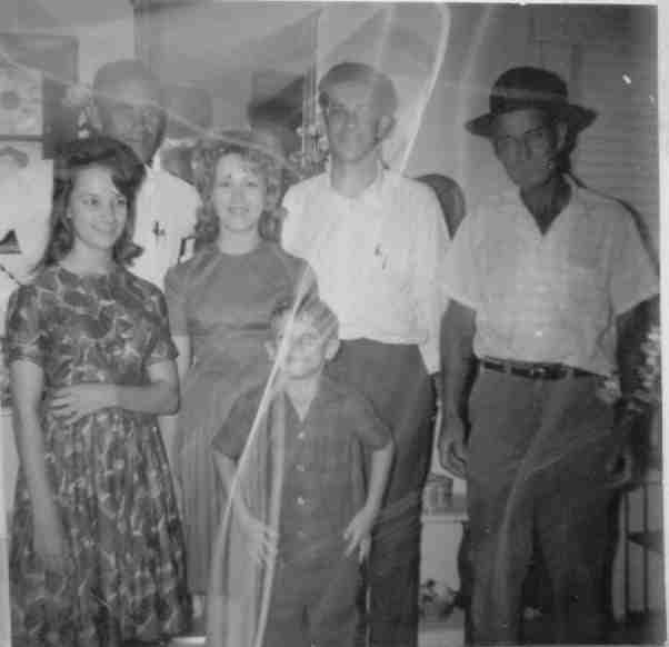 The three guys in back are Woody A McGehee, The middle guy is Stanley, I think, (maybe Bill?) then of course John F McGehee. The young man is Curtis E McGehee, and the two girls are no doubt Christine and Gloria! Someone help me out here! :)