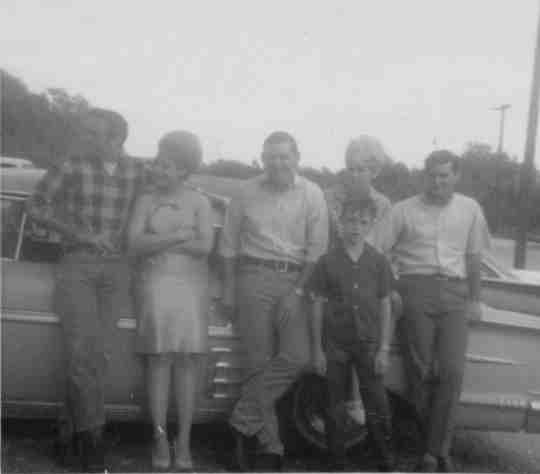 Left to right, there is Don and Janice McGehee, Elton McGehee, and the youngest is Curtis E McGehee. These are all John and Mary's sons. According to the picture, the woman sitting on the back of the car is Jean, L.C's daughter, but the picture does not name the man at the far right. This photograph was taken in 1967.