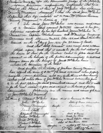 These probate records for Jane McGehee can be found at the Lawrence county court house in Mt Vernon Missouri.