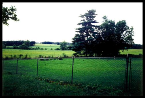 This is a picture I took from about half way down the small "tractor trail", if you look in the center of the road, you can see a tomb stone at the end of it. The picture on the left is the area to the left of where Im standing. Although these two pictures dont match up exactly on the left side, it still gives you a fairly good view of the area.
