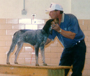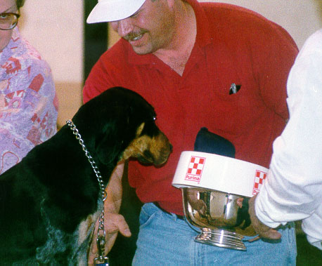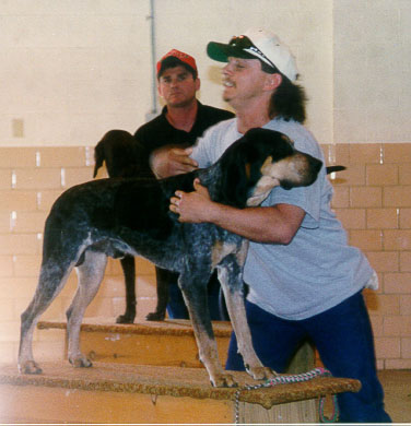 Dexter Whatley with his Class winning Female BlueTick named Hoss'Tex Blue Tag