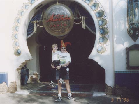Here is a picture of my brother and me in front of Aladdin's Oasis in Adventureland.