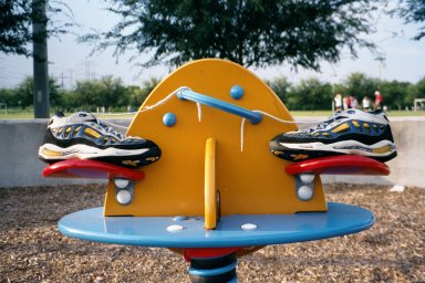 Shortly after acquiring Darryl and Bob, Susan and I took them for an outing. Here are our good buddies Darryl and Bob (Psst...you've been reading over two years' worth of writing about them now!) playing on a teeter-totter at Lost Creek Park. They're still kids at heart. I was interested in the fact that there was kind of a yellow-blue prettiness going on. You can see some soccer players in the background. I don't know who they are, but they've become a part of Darryl and Bob history.