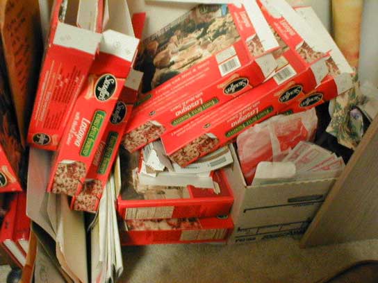 Look at all those Stouffer's lasagna boxes! Wow! I sure do love my lasagna! I think there are around 11 boxes there.