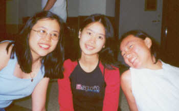 Judy C, Christine L, and Lina Y prepare for human bowling!