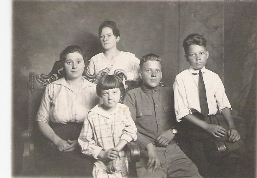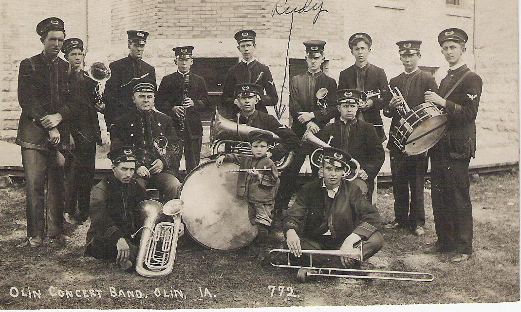 Hazel Marie Curttright - daughter of Charles Curttright and Lula Emma (Tarbox) Curttright Children of George and Lula Curttright - Hazel (back), Helen, Beulah, Edgar, and Rudy Olin Concert Band, Olin, IA - Rudy Curttright is in center