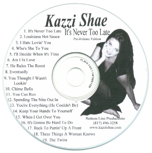 CD - $12.00 Kazzi's award winning album featuring Western Swing! A must have for Western Swing and Kazzi Shae fans! Songs include: