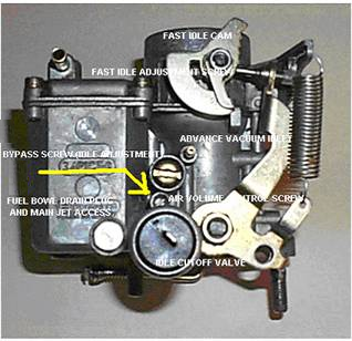 4. Go back to the Volume Screw and adjust it slowly for the fastest idle. It should not be much outside the range of 2-3 turns (½ turn in/out from the 2.5 basic setting). Then turn it very slowly IN until the revs drop by about 30rpm. If you don't have a tach, listen until you can just hear the revs start to drop, maybe as little as 1/8th turn.