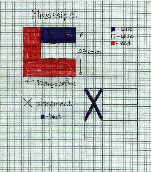To place the X on the square put one sc strip in place and use white ww acrylic yarn, and sew with an x in places as shown in picture.