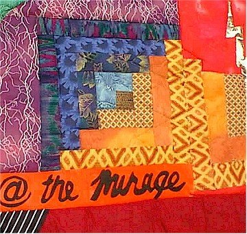 I used several techniques in the construction of this quilt, some I learned about from the QuiltArt list, such as the use of spray adhesives. Materials used are commercial and hand dyed fabric, acrylic paints, Prismacolor pencils, and permanent inks..........thank you, Barb Pozek.