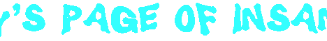 Welcome to my world(aka my version of reality).Inside you will find random insanity,incoherent babbling,unusual photos,odd observations,and weird and unusual stuff.Visitor contributions are welcome.This space is always under destruction. Check below for updates. E-mail me with any submissions, comments, suggestions, or just to bitch. This website is an equal opportunity offender. If you find anything on this site offensive, too bad. It's my site.Don't forget to sign the guestbook and take the online polls.Click on the text links below for easy navigation. Before proceeding please read this .